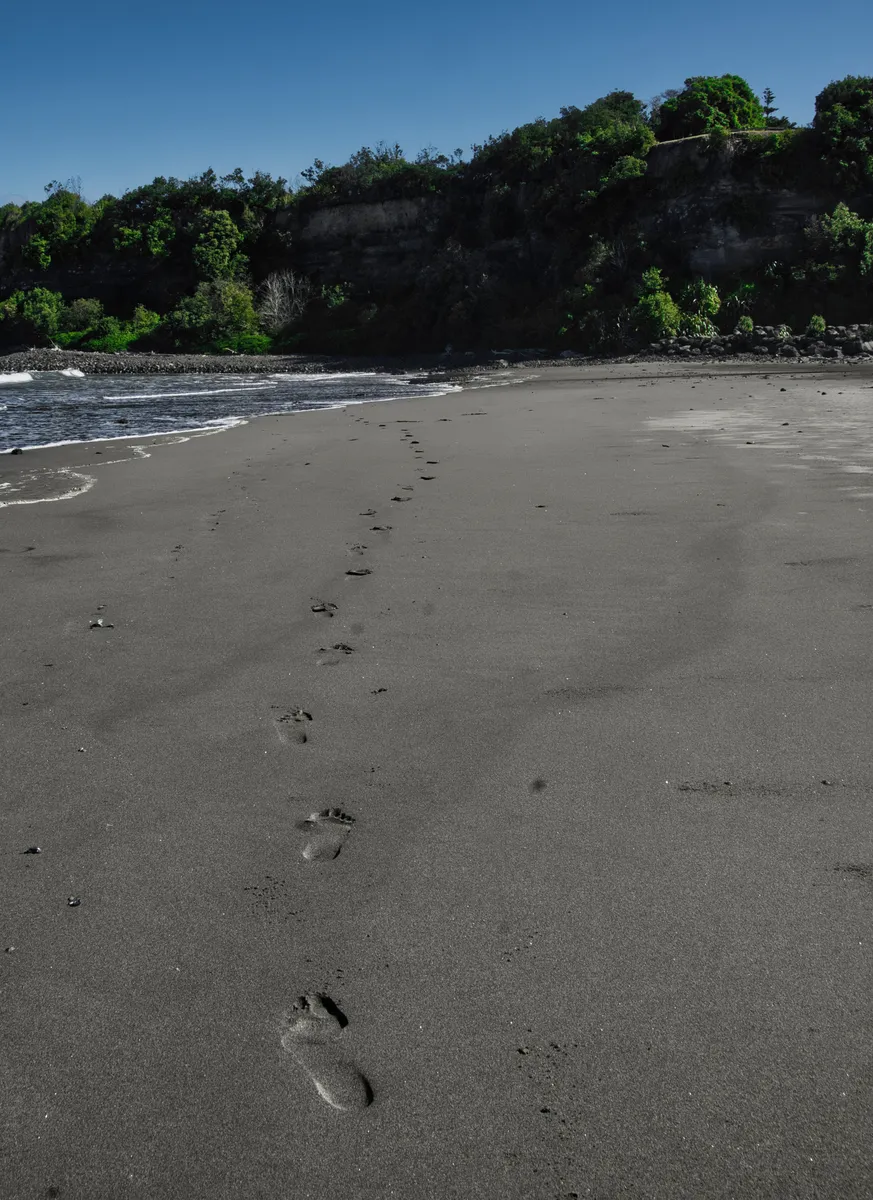 The black sands cradle secrets—their obsidian embrace reflecting the azure sky. As incoming waves retreat, a smooth mirror forms. Beyond, the Opunake Surf Club stands sentinel, where guardians begin their silent beach patrol. ..................................See price list for different sizes