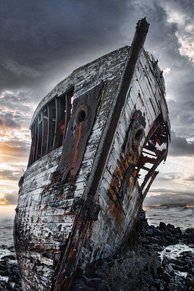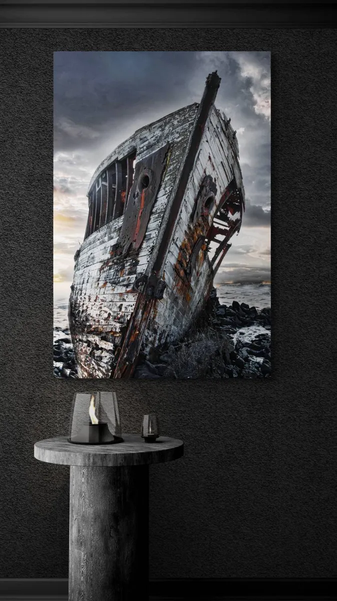 Within the rotting embrace of the ship’s hull, rivets and frames surrender to time’s relentless gnaw. A rotten porthole frames the ocean beyond—a melancholic gateway to forgotten voyages.............................................See price list for different sizes